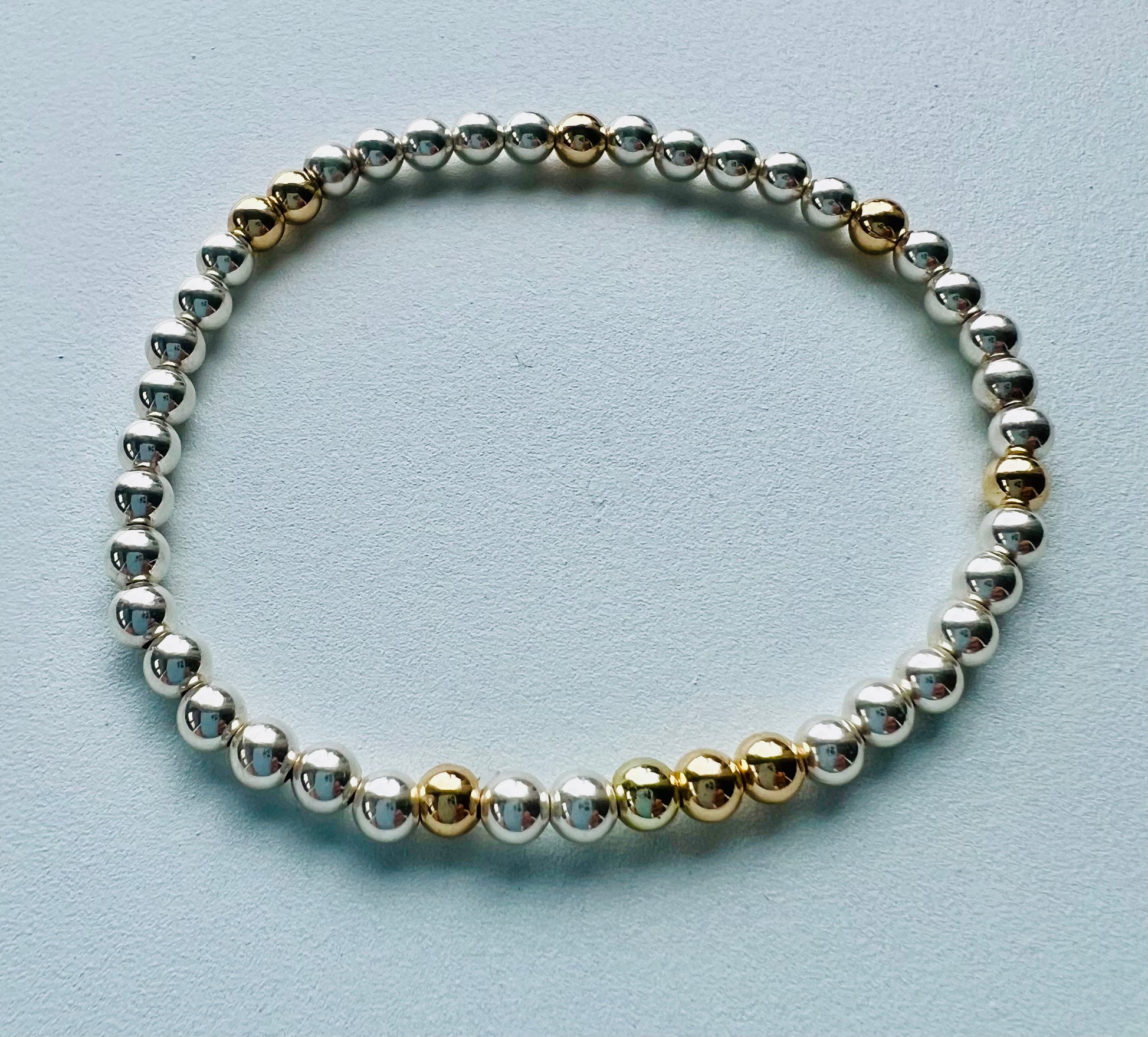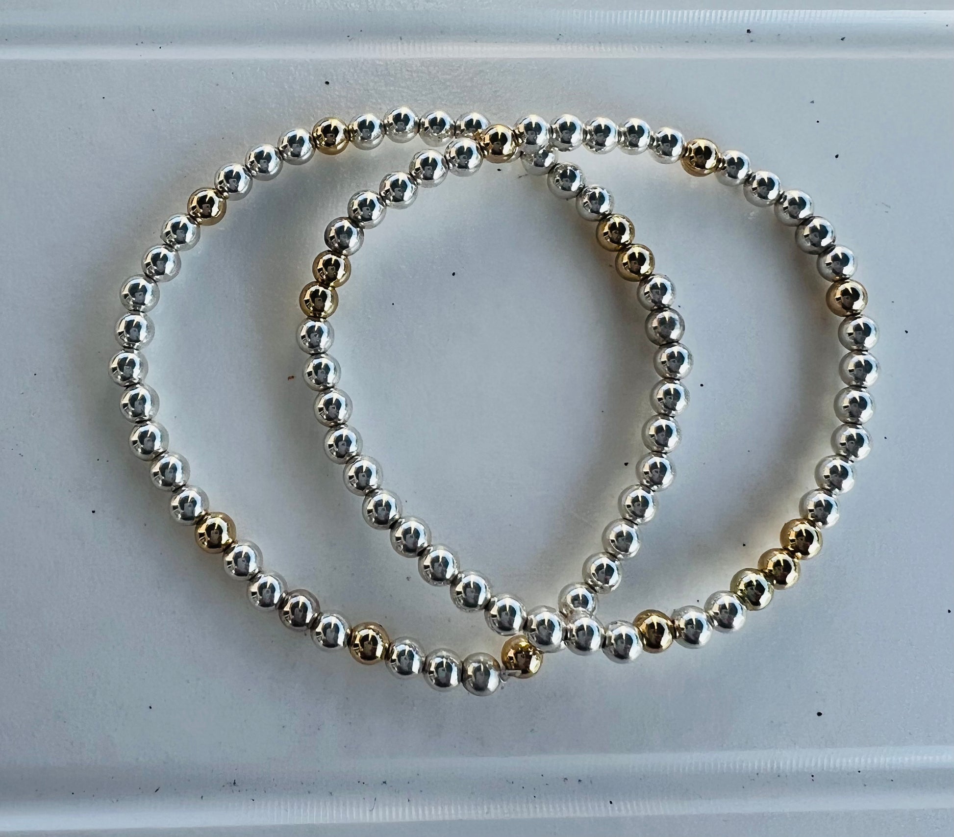 Sterling Silver and 14 K gold filled beads on strong elastic